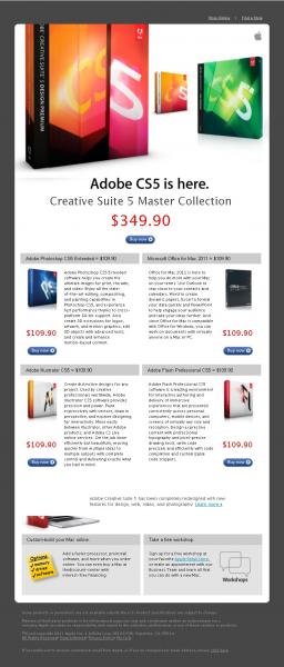 A mai napon több forrásból is jelezték, hogy egy Apple nevében elküldött hírlevél borzolja a kedélyeket. A levélben hihetetlen árakon kínálják az Adobe Creative Suite csomagmegoldásai mellett az Adobe Photoshop-ot is.