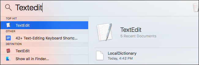 A gyors kijavításhoz nyissuk meg a TextEdit alkalmazást. Ehhez nyomjuk meg a Command+Space billentyűket egyszerre, majd a megjelenő keresőablakba gépeljük be a "TextEdit" kifejezést és nyomjuk le az Enter billentyűt. Ugyanezt megtehetjük a Finder segítségével, alkalmazások kiválasztása és dupla kattintás a "TextEdit"-re.