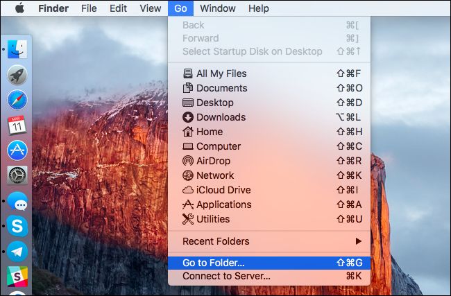 Ez a fájl a rejtett Könyvtár/Library mappában található és minden felhasználónál más és más. Indítsuk el a Finder ablakot. Kattintsunk a "Go" menüre, majd pedig azon belül a "Go to Folder" menüpontra.