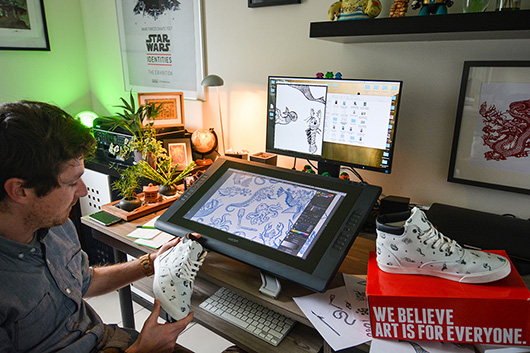 Íme az interjúnak a legfontosabb részletei, valamint néhány személyes projekt, amelyeket a Cintiq által biztosított végtelen lehetőségekkel valósított meg az iskolatáskáktól, futócipőktől kezdve egészen a limitált telefontokokig. Ezzel párhuzamosan Ladislas tagja egy poszter művészeti közösségnek, gyakran készít alternatív portrékat és grafikákat mozifilmekhez.