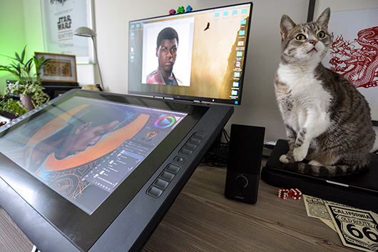 Az alkotásaim elkészítéséhez többnyire digitálisan dolgozom. Évekkel ezelőtt, amikor megvettem a Cintiq 12WX-et, attól a pillanattól kezdve tudtam, hogy ez a végtelen lehetőségek új világát nyitja meg előttem. Közvetlenül tudtam rajzolni a különböző szoftverekben és felfedeztem a digitális festés világát. Az évek során számos Cintiq modellt vásároltam (például a Companion Hybrid-et és nem sokkal ezelőtt a Cintiq 22HD-t).
