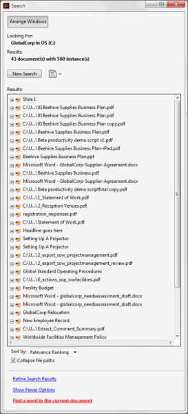 2. Válaszd ki a fájlokat, amiket frissíteni szeretnél - Ha a dokumentumok listája nagyon hosszú, válaszd ki a hozzátartozó fájlneveket. Kattints a " Find a word in the current document" szövegre a párbeszéd ablak aljánál.
