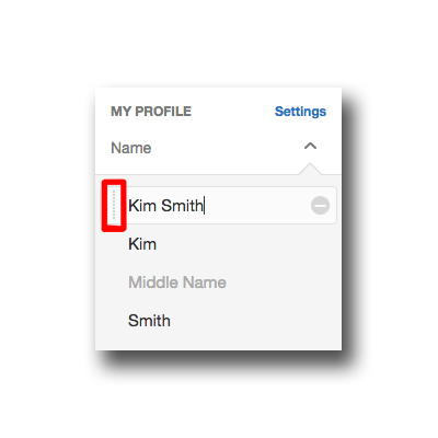 5. Ha kitöltöd a "MY PROFILE" részt a jobb oldali ablakban, egyszerűen meg tudod fogni a szöveget (a pirosan karikázott területet megfogva) és át tudod "dobni" az űrlapodra.