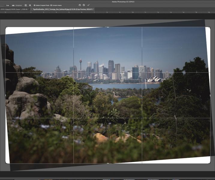 Ez a funkció kitölti az üres részeket, amikor egy képet bővítünk vagy pedig forgatunk Photoshopban, mint például ahogy tettük ezt a következő Sydneyben készült fényképpel is.