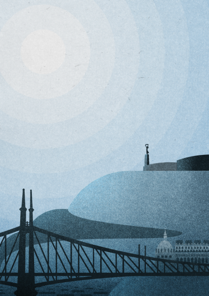 Molnár Balázs Márk, magyar grafikus legújabb sorozatában egyedi, kékes színekben mutatja be fővárosunkat a saját szemszögéből. A munkájához Adobe Illustratort és Adobe Photoshopot használt, a végeredmény pedig egyszerű és letisztult, a szavak helyett beszéljenek is inkább a képek.