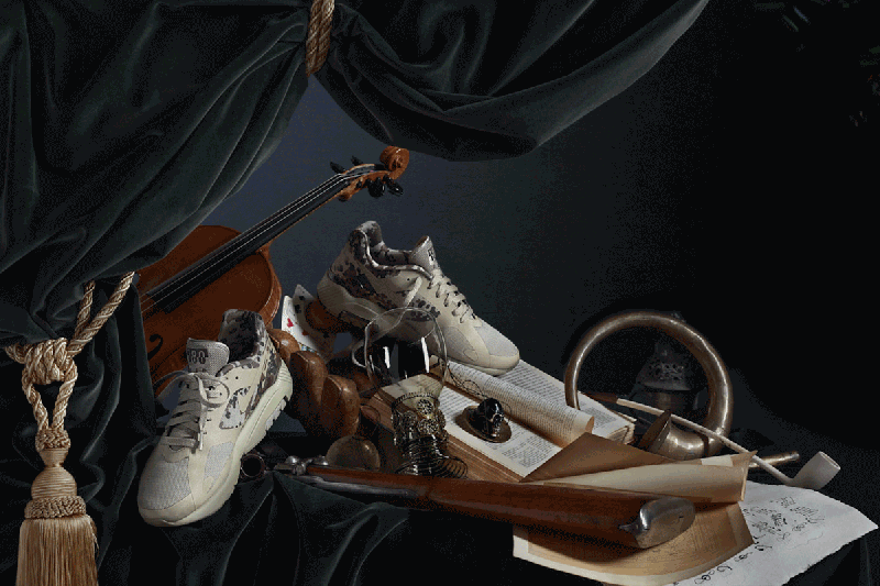 Különböző évek modelljeit mutatták meg, a 17. századi holland olajfestmények stílusában, a cipők pedig egészen meglepő módon, mintha teljesen beleillenének a környezetbe.