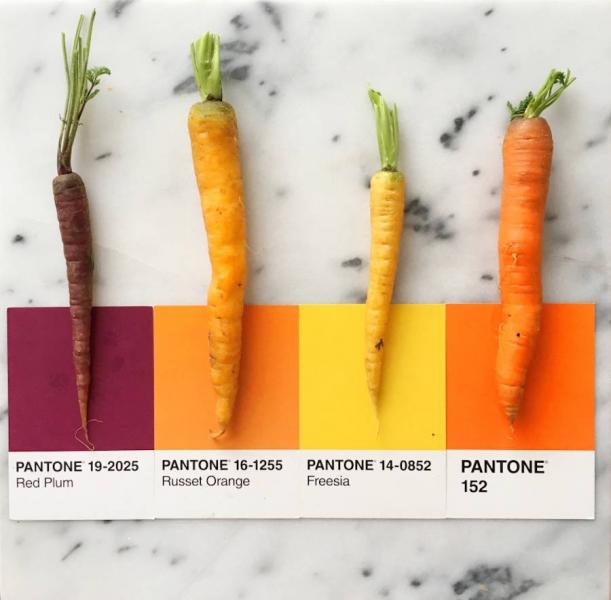A színek és ízek ilyen jellegű kérdései ihlették meg Luci Litmant is, aki évek óta készít grafikákat az ételekről, egyik legismertebb munkájában pedig Pantone színskálán helyezi el a legkülönbözőbb ennivalókat.