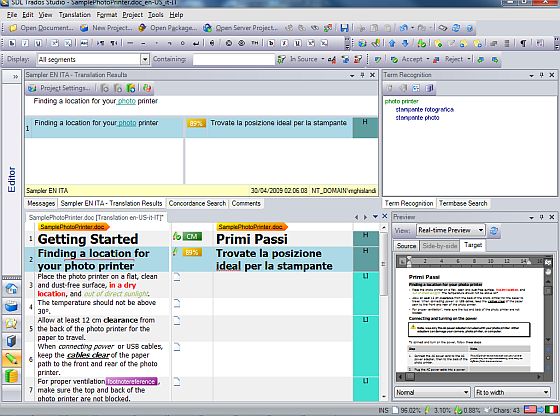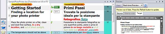 Valós idejű előnézet Miközben fordít, segítségével ellenőrizheti a végső Microsoft® Word, Microsoft PowerPoint, HTML és XML fájlok szerkesztettségét, csökkentve a projekt végén a DTP-re fordított időt.